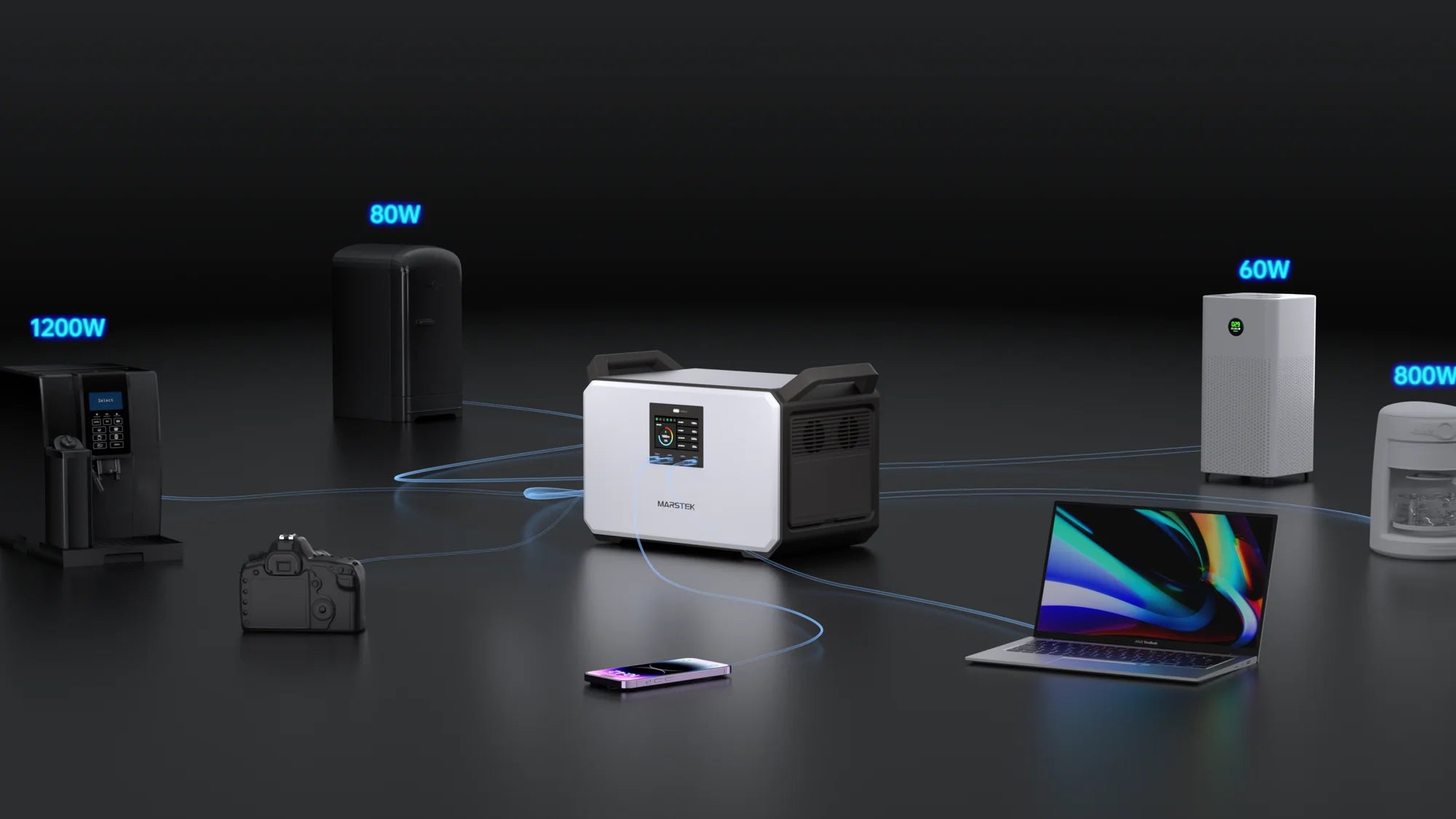 Peak power is crucial for handling high-startup surges from appliances like air conditioners, which often need 2–3 times their rated power momentarily. With 10kW burst performance, the M5000 ensures smooth startups, preventing overloads and shutdowns.