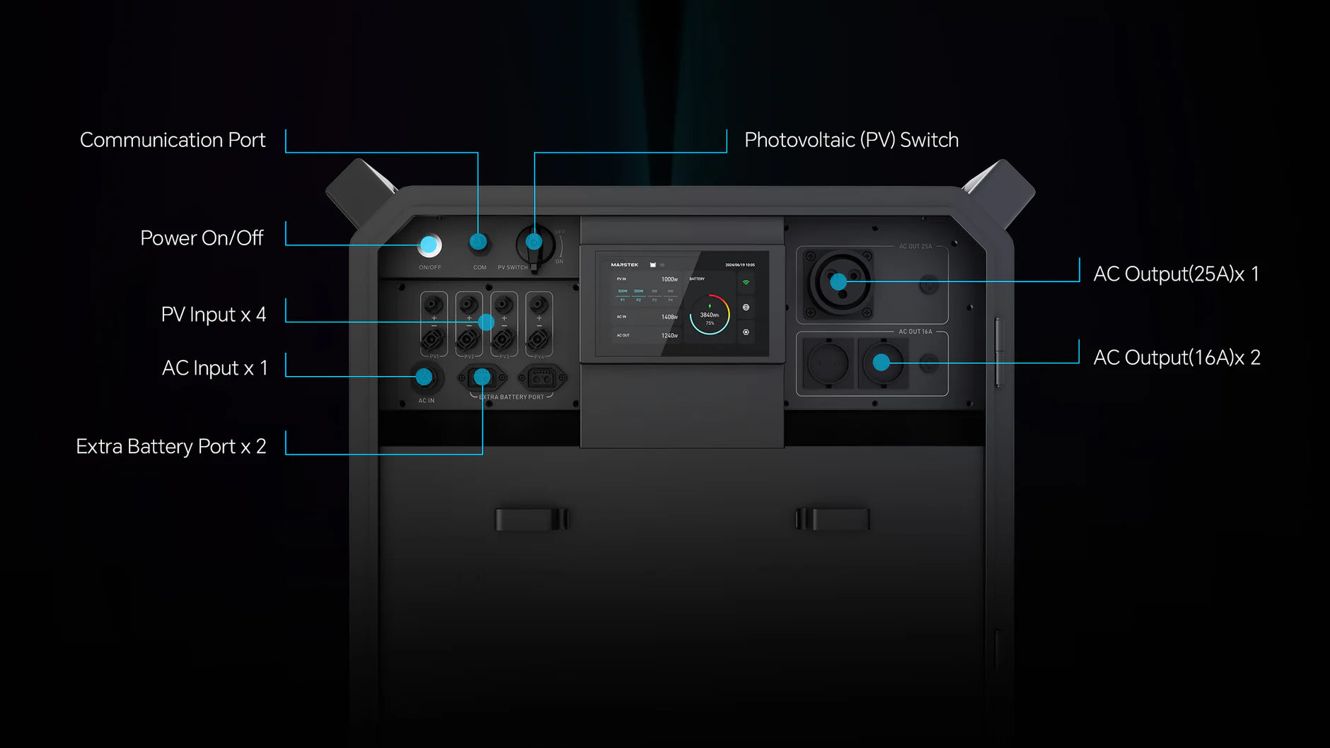 External Battery Access CAN × 2, RS485 for EMS, Wi-Fi / BT