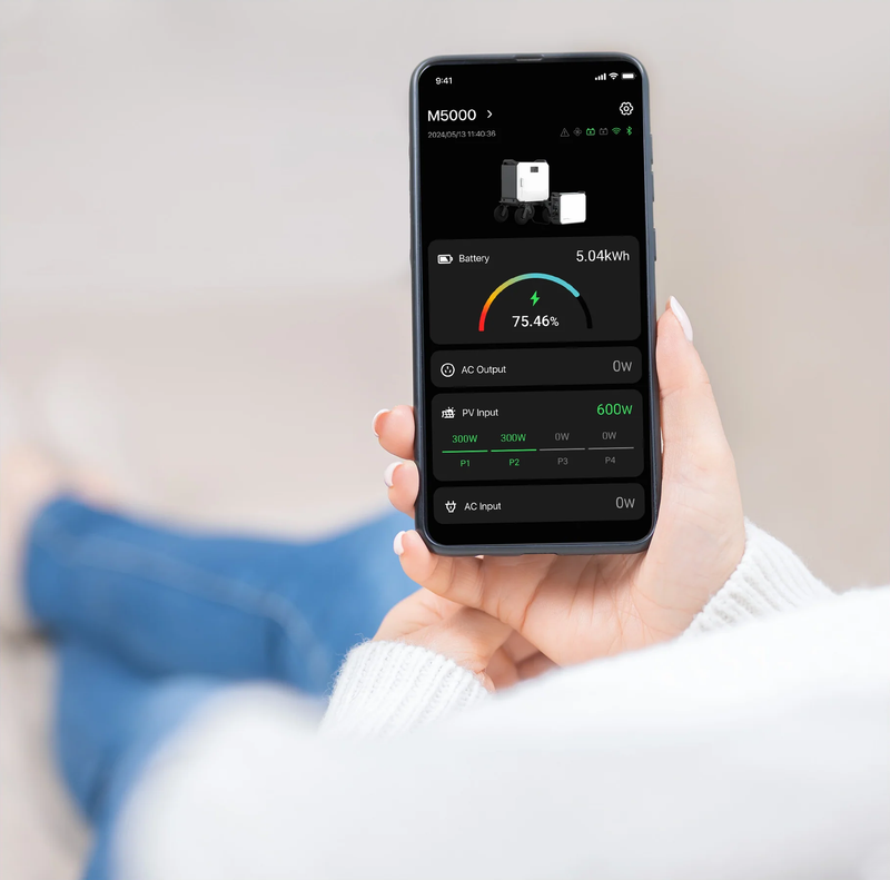 Peak power is crucial for handling high-startup surges from appliances like air conditioners, which often need 2–3 times their rated power momentarily. With 10kW burst performance, the M5000 ensures smooth startups, preventing overloads and shutdowns.